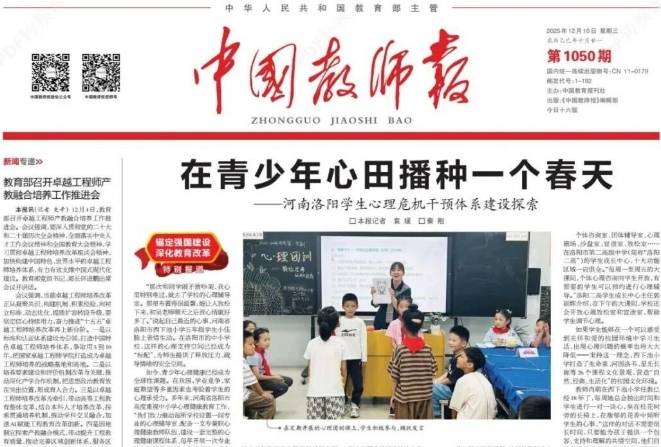 12月10日,《中国教师报》头版头条聚焦洛阳教育,以《在青少年心田播种一个春天——河南洛阳学生心理危机干预体系建设探索》为题,介绍洛阳教育典型做法。一起来看吧!