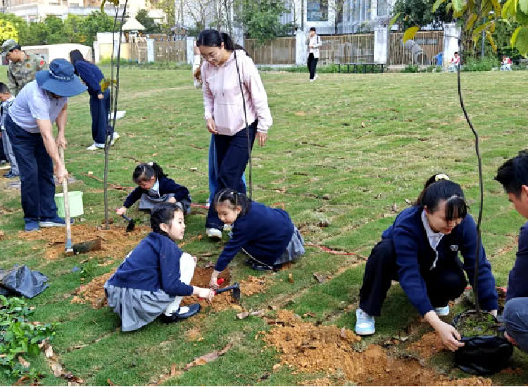 3月12日,在生机盎然的初春时节,深圳市坪山区一场别开生面的“校家社联动,春日植新绿”植树节主题活动在马峦街道举行。来自深圳市消防救援支队的消防员、马峦街道和马峦社区的党员职工,以及金尊幼儿园、立高幼儿园、锦龙小学和新合实验学校的师生、家长代表共同参与,在春日里携手种下新绿,为绿美坪山建设增添了一抹动人的亮色。 闲置地焕新颜,多元共建添活力 本次植树活动选址于马峦街道金尊幼儿园侧一块近4500